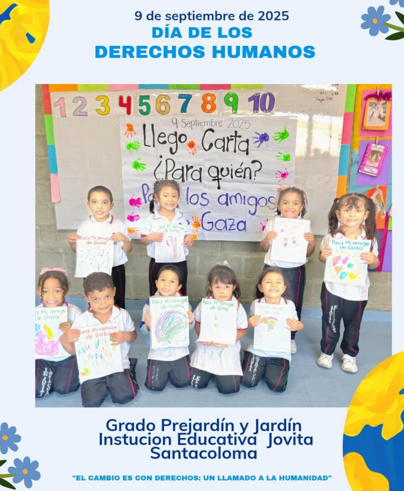 Este 9 de septiembre, en la Institución Educativa Jovita Santacoloma conmemoramos el Día Nacional de los Derechos Humanos, una fecha que nos recuerda la importancia de promover la paz, la tolerancia y el respeto por la dignidad de todas las personas. Durante la jornada, nuestros estudiantes y docentes participaron en diferentes actividades pedagógicas y culturales orientadas a la reflexión sobre el valor de los derechos fundamentales y la responsabilidad que tenemos de protegerlos y ejercerlos en la vida diaria.